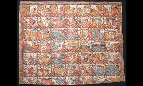 The Kamasan style of traditional painting originates from religious symbols used in rituals and ceremonies and is greatly influenced by Hindu and Buddhist deities and myths that have been popular for centuries. The colours, motifs, and stories are uniquely presented via this intriguing art style which uses natural materials to make the pigments used in the paintings. Glue is made from fish or animal skin (and even tree sap) to bind colours to the handmade cotton cloth. The cloth has been especially treated with starch and polished using a cowrie shell, which makes the surface smooth for easy drawing. Once characters and stories have been selected by the artist, a pencil is used to sketch them on the cloth. Everything used is natural, with the brushes and pens cut from bamboo and the fibers from sugarplum stalks. The different colours are made from minerals, rocks, carbon, leaves and calcium. There are several processes involved in creating these paintings, though most elements are constant, so that body parts are outlined in black and red, hair is always black and skin and wood are brown. The artwork is a collaborative effort, with the initial drawings done by the more accomplished painters and apprentices adding colours. Only the most skilled artisans complete the final details since they have the most experience. Epic Indian myths like Ramayana and Mahabharata are most frequently illustrated in this traditional style of painting |