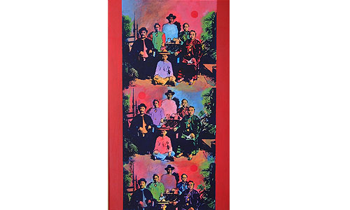 Baba Family belongs to Redza Piyadasa's Malaysian Series which began in the early 1980s. In the series, Piyadasa makes silk screen prints from old photographic portraits of indigenous Malays and the multi-ethnic settlers of Malaysia, and re-works them with psychedelic colours and traditional fabric. In doing so, he personalises the past and surfaces issues of history, memory and identity. Artist, art critic, art historian, and educator, Piyadasa wears many hats. He graduated from the Hornsby College of Art, London, in 1967, and completed his post-graduate degree with the University of Hawaii, Honolulu, in 1973. In the late 1960s and early 1970s, Piyadasa emerged as one of the driving forces advocating conceptual art as an alternative aesthetics to formalist values prevailing in Malaysian art. Together with Sulaiman Esa, he staged Towards a Mystical Reality in 1974, in which installations incorporating found objects were introduced as investigative strategies to examine issues of society, identity and culture. The exhibition was accompanied by a manifesto in which they advocated the revision of Malaysian art based on Asian values. |