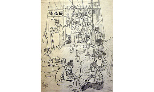 Liu Kang (1911, China – 2004, Singapore) One of the seminal figures of modern Singapore art, Liu Kang, along with his contemporaries Chen Wen Hsi, Cheong Soo Pieng, Georgette Chen and Chen Chong Swee, are regarded as pioneer artists whose practices shaped the pictorial language of the Nanyang School. Born in Fujian, China, Liu's formative years were spent in Malaya. He returned to China to train at the Xinhua Arts Academy, Shanghai, before departing for Paris in 1928 to immerse himself in the Parisian art scene where Liu's paintings suggest the stylistic influence of Post-Impressionism. He taught at Xinhua for a few years before returning to Malaya in 1937, and eventually settled in Singapore after World War II. In Singapore, Liu's artistic activities extended beyond art making to teaching and writing, revealing himself to be a keen observer and articulate commentator on art, society and culture. Liu worked largely in oil and pastel. In the 1950s, he pushed the earlier stylistic values of Post-Impressionism to advance naïve and decorative qualities and gave precedence to bright hues, flat surfaces and bold outlines in his treatment of local themes. These qualities mark an individualistic style that is Liu's alone among his contemporaries. Liu Kang's Building Site/ Samsui Women (1951) pays tribute to the female economic migrants, who laboured as construction workers in the early years of modern Singapore. This can be cross referenced with Dr Ivan Polunin's video collection of samsui women at work. Originating from the province of Sansui, the samsui woman's uniform consisted of a red headgear and dark blue shirt and pants. The individual activities of the women labouring on a construction site are evident as they engaged in building the Hongkong and Shanghai Banking Corporation (HSBC) at Collyer Quay. The work is explicitly detailed in a realist manner, suggesting the artist's intent to offer an account of their exacting vocation. Liu was conferred the Public Service Star in 1970 and the Meritorious Service Medal by the Singapore Government in 1996. |
