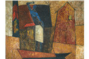 H.C. Gade's Boatman (1957) presents a determined commitment to individual modernism. Gade was a founding member of The Bombay Progressive Group which began in 1947 with a self-declared socialist position. As a result, Gade's style seems to be derived from a combination of Cubist means and expressionist goals – an approach shared by many of the 1940s Modern Art Movement who sought to convert banal and working class motifs like that of a boatman and the thrust of an oar into convincing symbols of critique against the excesses of the colonial experience. |