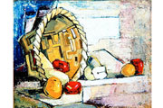 Ng's teachers at NAFA included Chen Wen Hsi, Cheong Soo Pieng, Chen Chong Swee, and Georgette Chen. While the stylistic influence of his mentors are palpable in many of his student paintings, this still life composition demonstrates an instance of the student's stylistic independence. The arrangement combines representational interest with abstract devices in angular structures and geometric forms. |