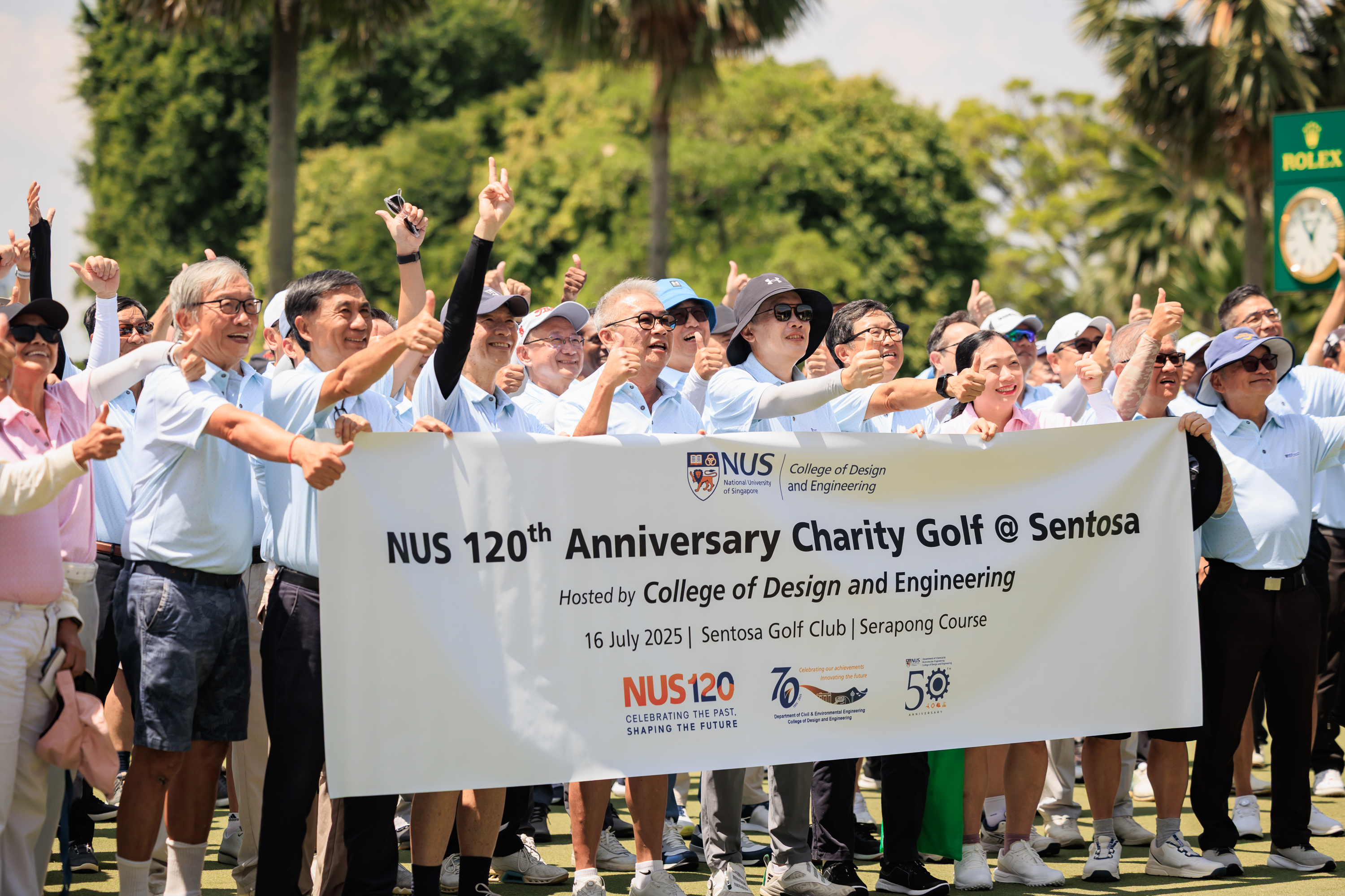 This can-do spirit was what inspired the College of Design and Engineering’s (CDE) fundraising efforts at the NUS 120th Anniversary Charity Golf @ Sentosa. On 16 July 2025, over a hundred alumni, industry partners and friends of CDE gathered at the Sentosa Golf Club’s iconic Serapong course for a meaningful day of golfing, networking and fundraising.