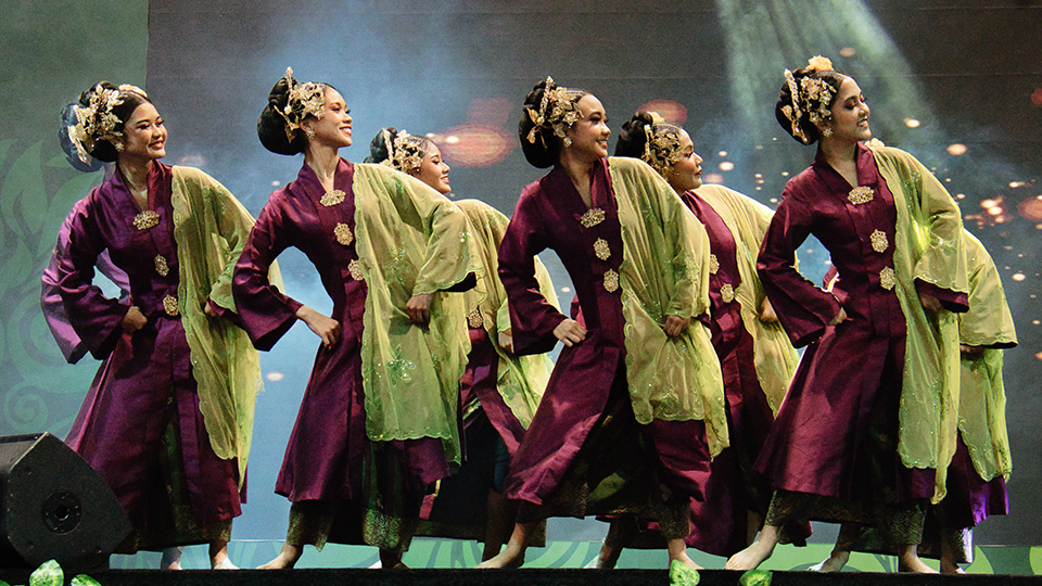 Azzah (second from left), performing with NUS Ilsa Tari at Rentak Budaya 2023.