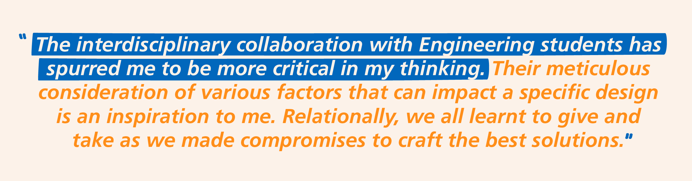 When Azzah first set foot in NUS, it opened her eyes to a refreshing diversity — both in terms of the people she would meet as well as the interdisciplinary courses she could take in CDE. She cites the EG1311: Design and Make course as her favourite amongst the common courses offered to all students in CDE. The project teams were a diverse mix of engineering and design students, resulting in a dynamic exchange of knowledge and the cross-pollination of ideas.
