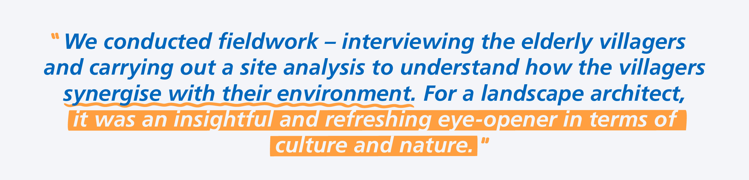 Characterising the culture of NUS Landscape Architecture as generous, she opines: “School life is very fast-paced. Yet even though everyone wants to succeed, there is no individualistic mindset. Instead, everyone is willing to contribute and collaborate in our work projects.”