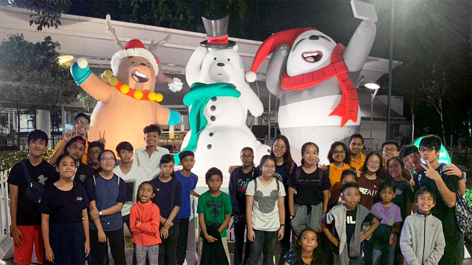Through the Tiong Bahru Youth network, Zi Ang (furthest back, left) brought the kids out to enjoy a performance at City Square Mall and take in the decorations.
