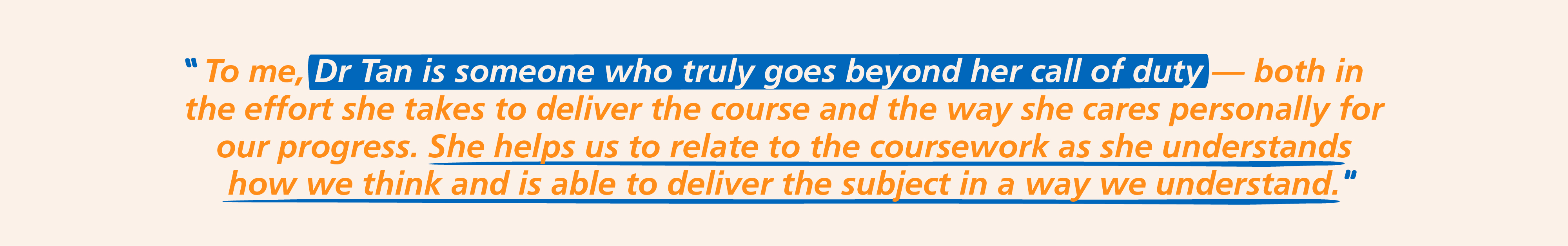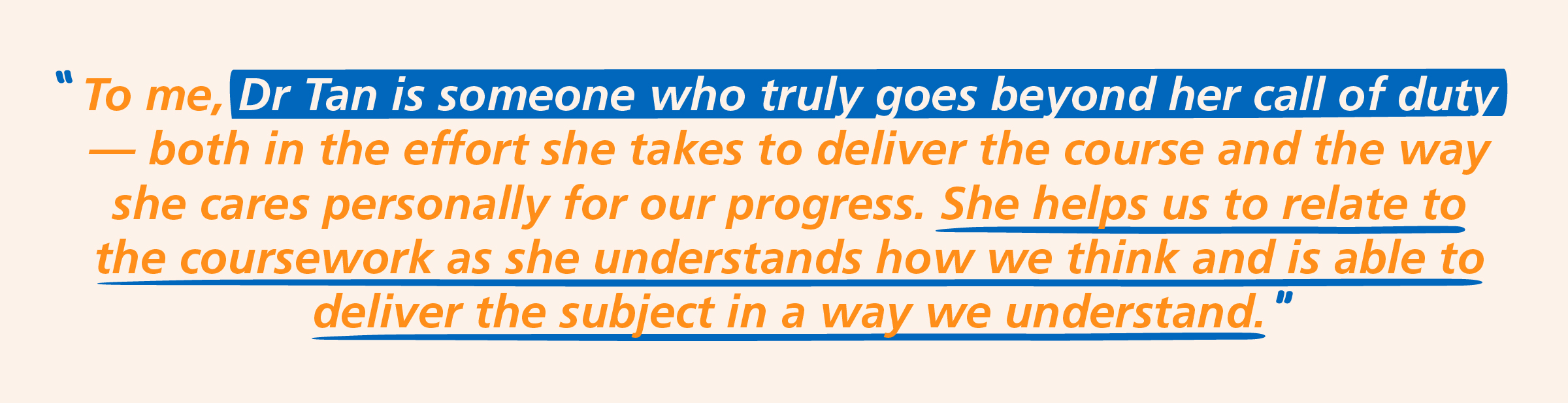 Zi Ang also encountered many dental instructors who have refined his understanding of the field of dentistry, and was particularly grateful to Dr Tan Ming Yi who specialises in prosthetic dentistry.