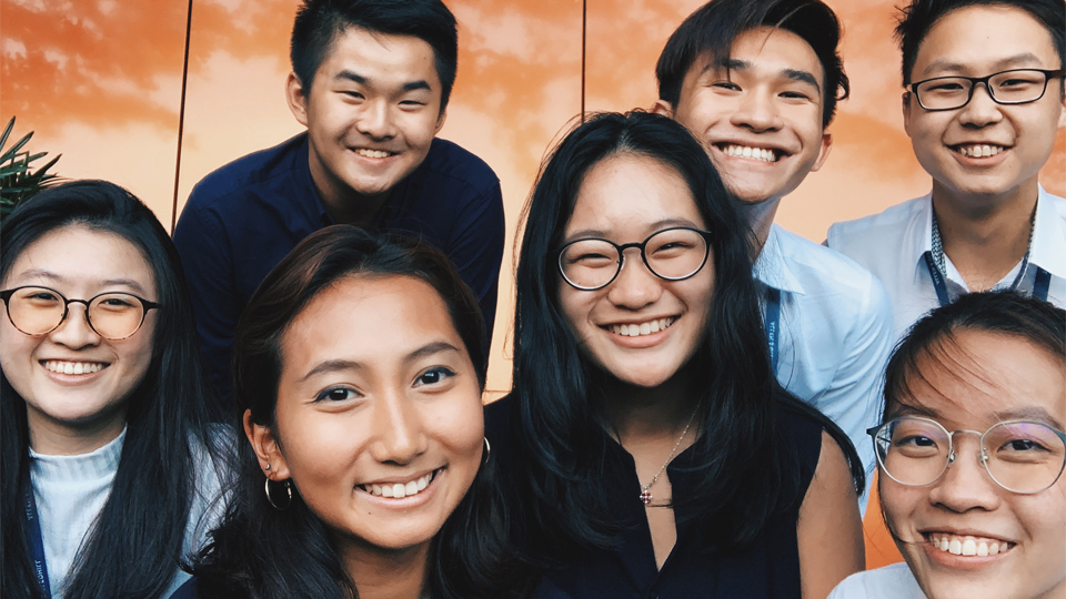 Marsha (first row, first from right) with her Year 1 NUS Law Orientation group.