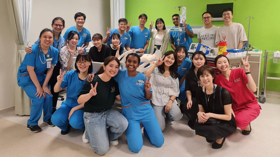 This spirit of collaboration and openness is also prevalent in the yearly healthcare simulation sessions, where Nursing and Medicine students work together in a simulated ward setting. With mannequins standing in for patients, the students are given a test case scenario and must mutually decide how to care for the patient. This not only helps prepare them for the real world through experiential learning, but also strengthens their interprofessional collaboration and communication skills so that they can deliver excellent patient care together. “The culture in Nursing is very encouraging and positive, it provides a safe space for us to learn from one another, especially across disciplines,” Apple notes.