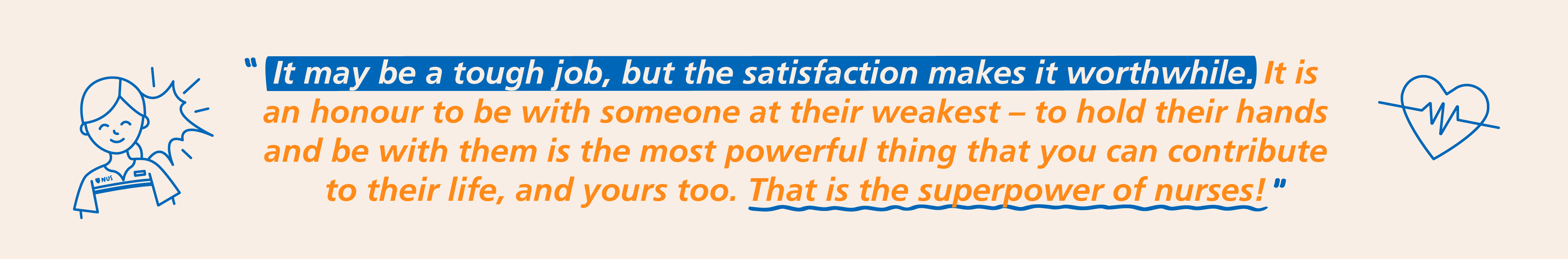 While Apple has always been interested in healthcare, she never dreamed of being a nurse when she was younger. “I took a longer route to discover my passion. Initially, I was working as a laboratory technician with very little human contact. After switching to work in a clinical setting, I discovered that I prefer interacting with patients and took my first pivot — enrolling in Nursing at Nanyang Polytechnic for a mid-career switch in 2016 under the Career Conversion Programme (CCP),” the mature student reveals.