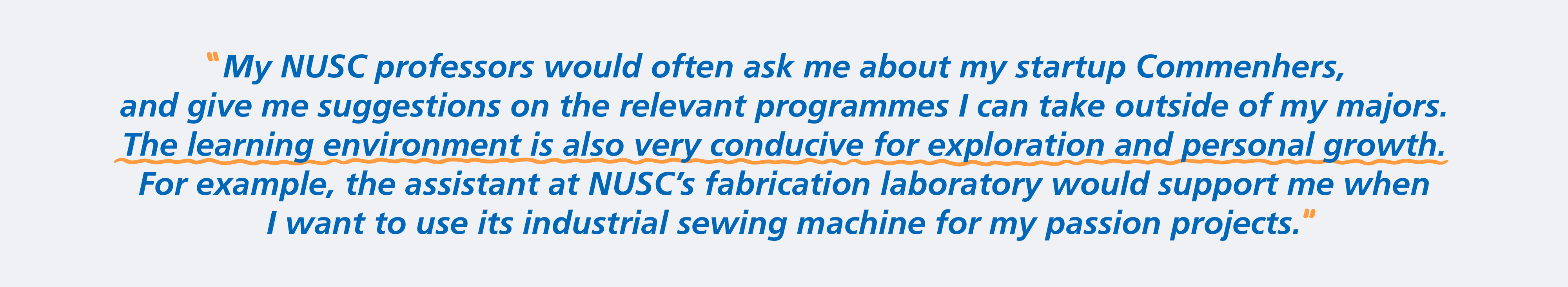 Describing the NUSC culture as friendly and nurturing, Nuryanee finds the faculty and staff very supportive of the students’ projects and endeavours.