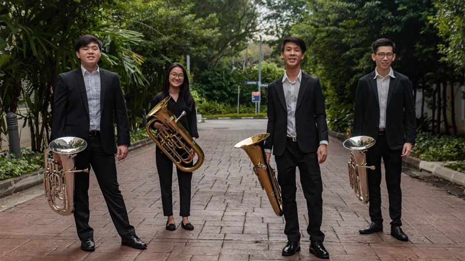 Sze Khen (first from right) with his fellow euphonium players from the NUS Wind Symphony after their performance at InTempo 2019: Of Music and Hope.