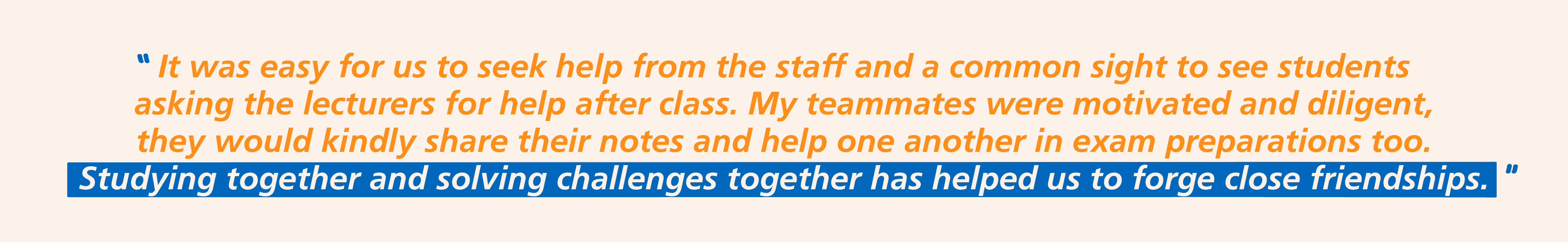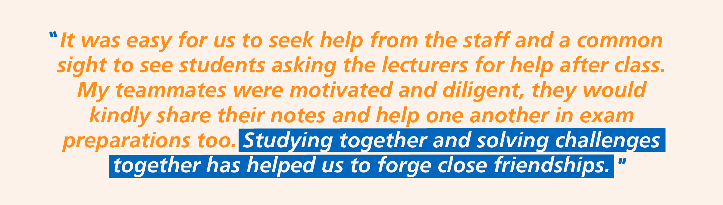 The internship stint gave Sze Khen an invaluable platform to be creative and innovative, to hone his time management skills and to grow his sense of self-awareness. “I learnt to communicate effectively in a very fast-paced work environment. This really helps us to arrest teething problems as we flag potential problems early,” he explains.