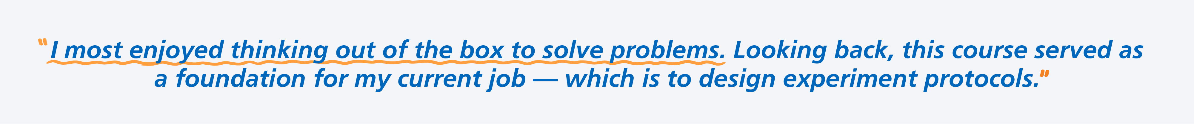 Prof Yu subsequently offered him an internship at the biotech startup and Sze Khen jumped at the chance to be a part of this forward-looking company: “I was quite intrigued by the technology in this industry and I thought it was very likely to take off in the future. That is why I decided to join them, and accept the challenge to see if we could help this industry succeed.”