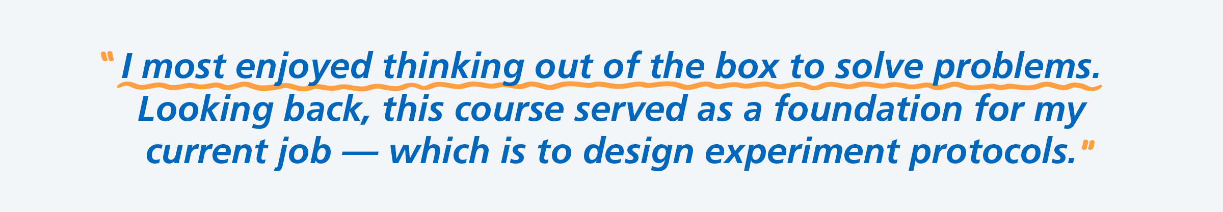 It was no surprise, then, that his favourite course was LSM3226: Medical Mycology and Drug Discovery. Taken during his final year, students were required to use an allocated budget to test drugs innovatively based on a given scenario and assignment. Sze Khen enjoyed that this gave them the freedom to design their own experiments.