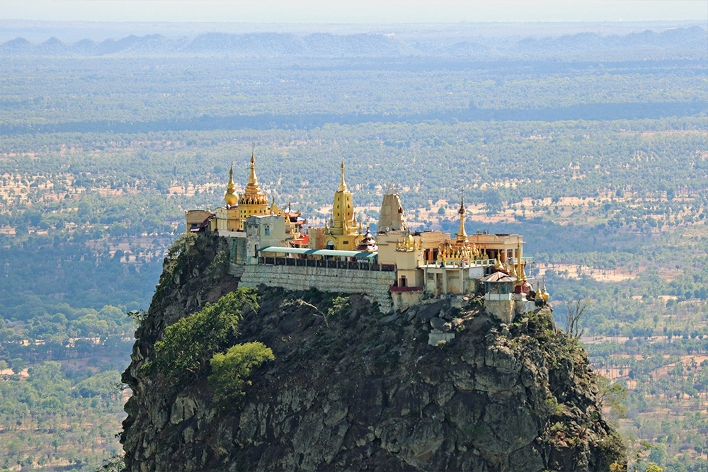 Mount Popa, an extinct volcano over 1,500m above sea level.