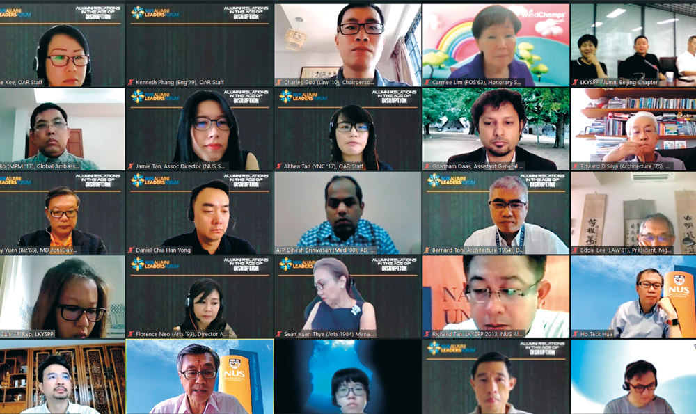 Fortuitously themed “Alumni Relations in the Age of Disruption”, this year’s NUS Alumni Leaders Forum (ALF) was held on 18 July and saw over 100 alumni leaders come together virtually to discuss and explore how to shape Alumni Relations for the decade ahead.