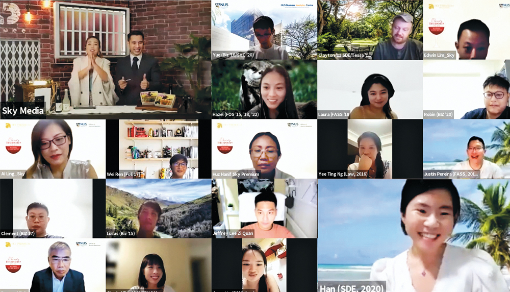 Organised in collaboration with Sky Premium International, the event was hosted by Ms Charmaine Yee, Radio and TV Presenter, and Mr Chek Wong, Certified Wine and Spirits Educator and Sommelier with 11 years of experience. It was an enjoyable evening of delicious bento, many toasts and fun as alumni participated actively in the game segment and post-event networking session. While unable to fully replicate social interactions in-person, the event was nevertheless a welcome respite for young alumni to network and make new friends.