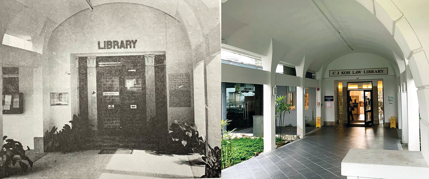 The aesthetics of the old Library Building (left) have been sensitively preserved at the CJ Koh Law Library (right).