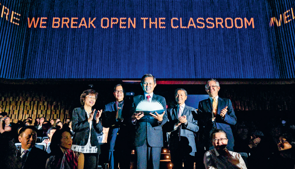 Minister for Education Mr Chan Chun Sing (centre) graced the official launch of NUS College with Prof Simon Chesterman (far right) and other NUS officials on 20 February 2023.