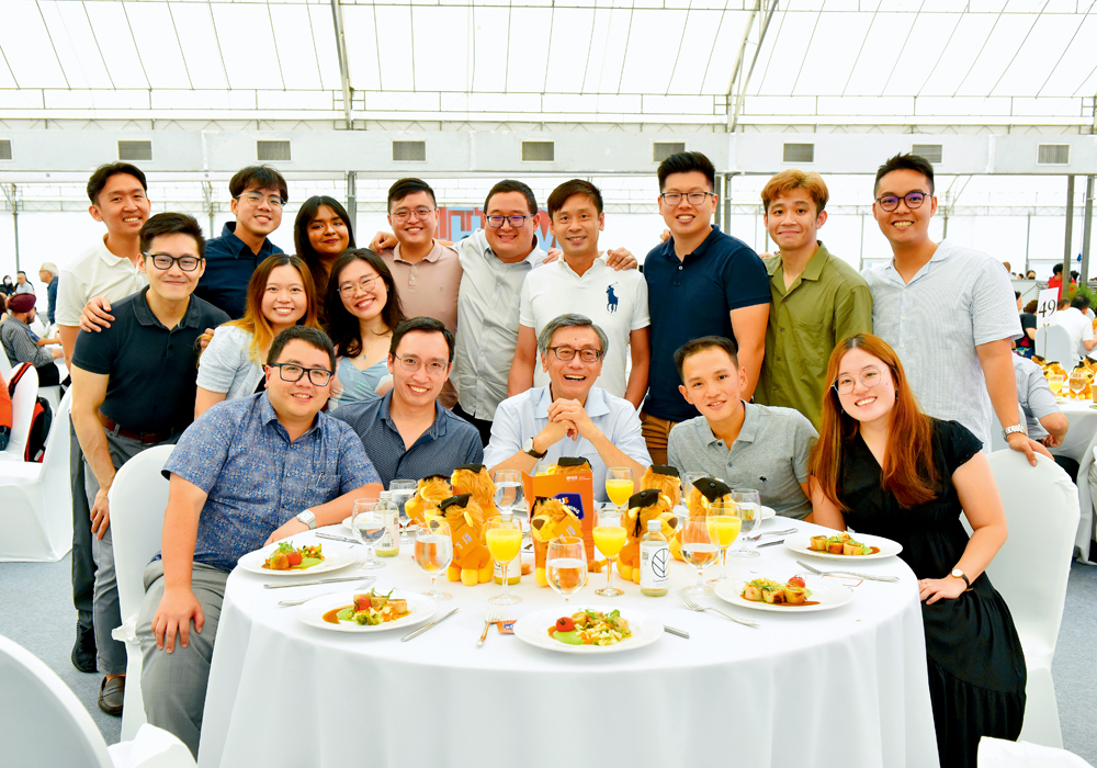 Alumni with NUS President Prof Tan Eng Chye and NUS Alumni Advisory Board member Mr Soh Yi Da (Arts and Social Science + USP ’14) (left front).