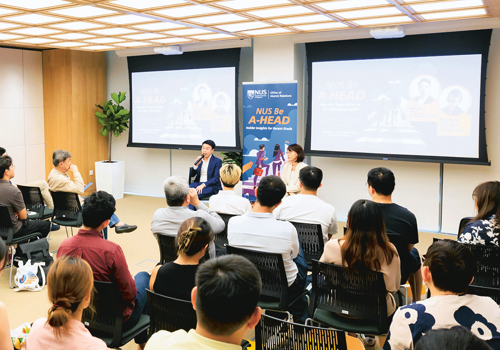 Mr Lau and Ms Wong spoke at the inaugural NUS Be A-HEAD career seminar on 23 August, which offered young alumni and graduating students career hacks, advice and tips.