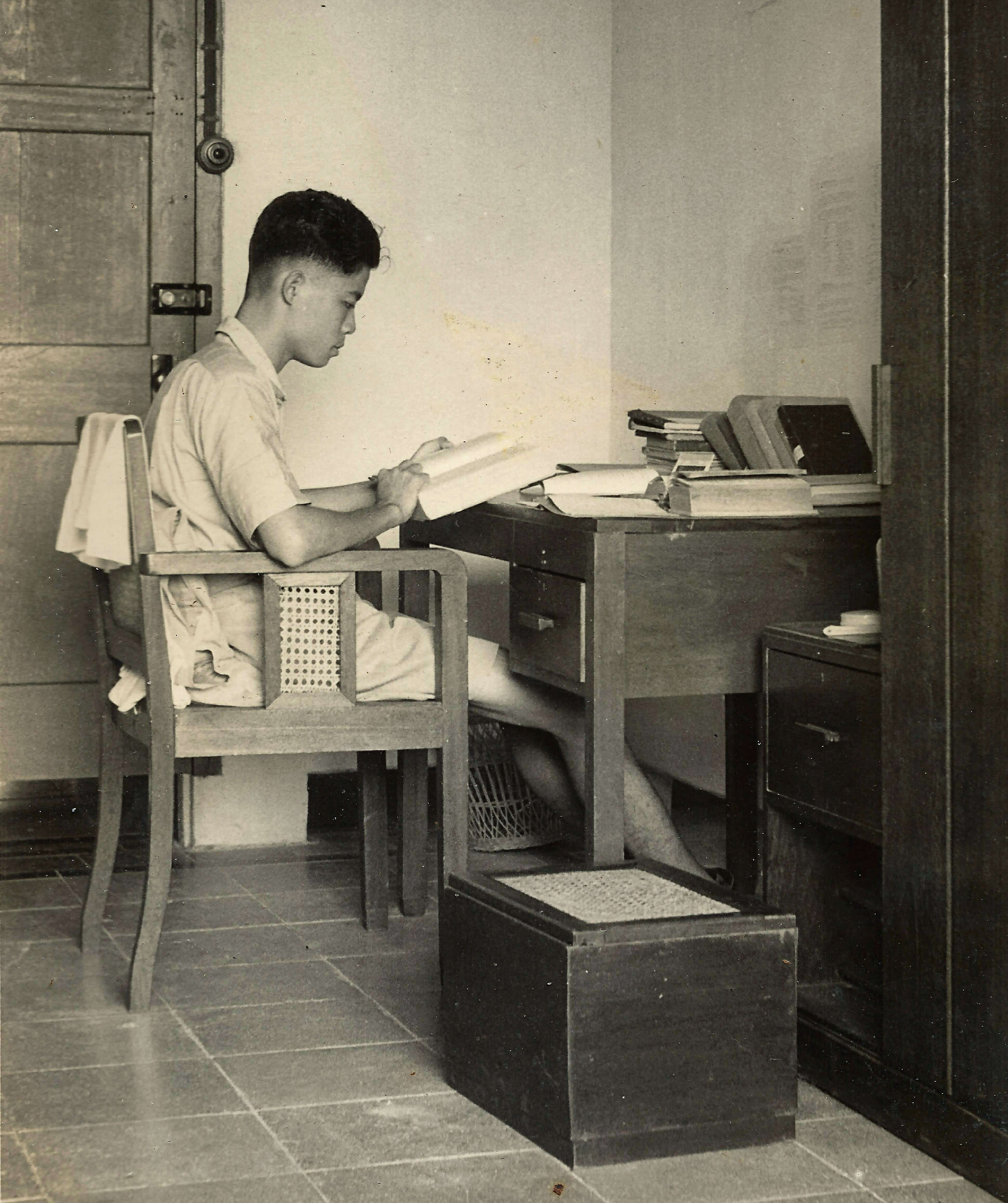 Dato’ Tan Boon Lin studying in his ‘cell’ at Raffles
