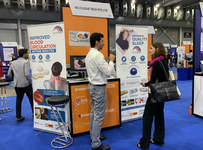 Mr Ahmed Khan introducing the sleep pillow to a client at InnovFest 2023 Singapore (Photo: M. I. Cloud)