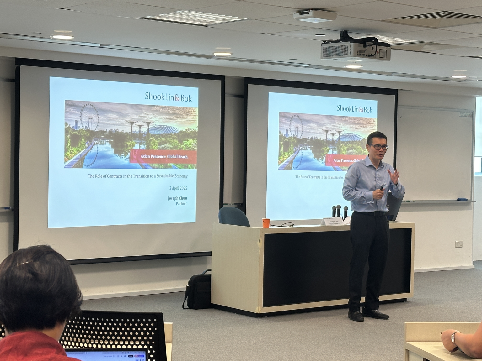 - The Role of Contracts in the Transition to a Sustainable Economy, covering the motivations for private entities to care about contracts in the form of green loans, green procurement and green leases – from Dr Joseph Chun, Partner, ESG Practice, Shook Lin & Bok LLP and Adjunct Associate Professor, NUS Law;