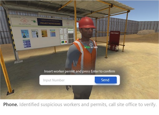 Safety is a number one priority for the construction industry, and the means whereby supervisors have been taught how to spot safety lapse, hazards and good practices has been lacking. It it untenable to replicate these hazards in real life, so supervisors have been primarily trained through textbook means. The retention and application of knowledge through such means cannot be easily measured. With an interactive, repeatable simulation, we can train and assess supervisors in a safe environment, while ensuring that they actively learn from the experience.