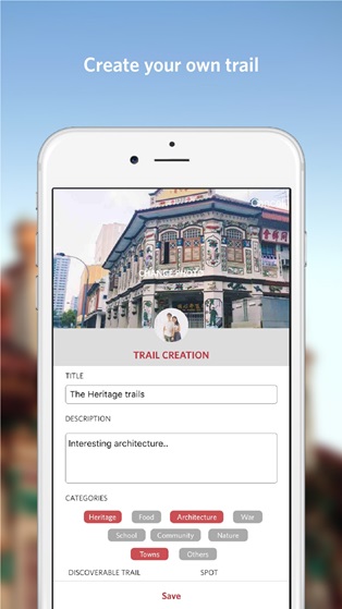 SG Trails allows users to explore a plethora of trails gaining a better understanding of Singapore's heritage along the way. Users can also craft their own trails for the general public to view and use as well. The app was the first known mobile application that contained all of Singapore's heritage, crafted into mostly walkable trails that visitors could explore and follow along with the app's features.