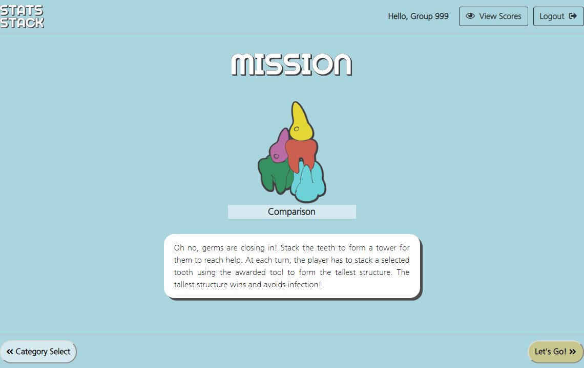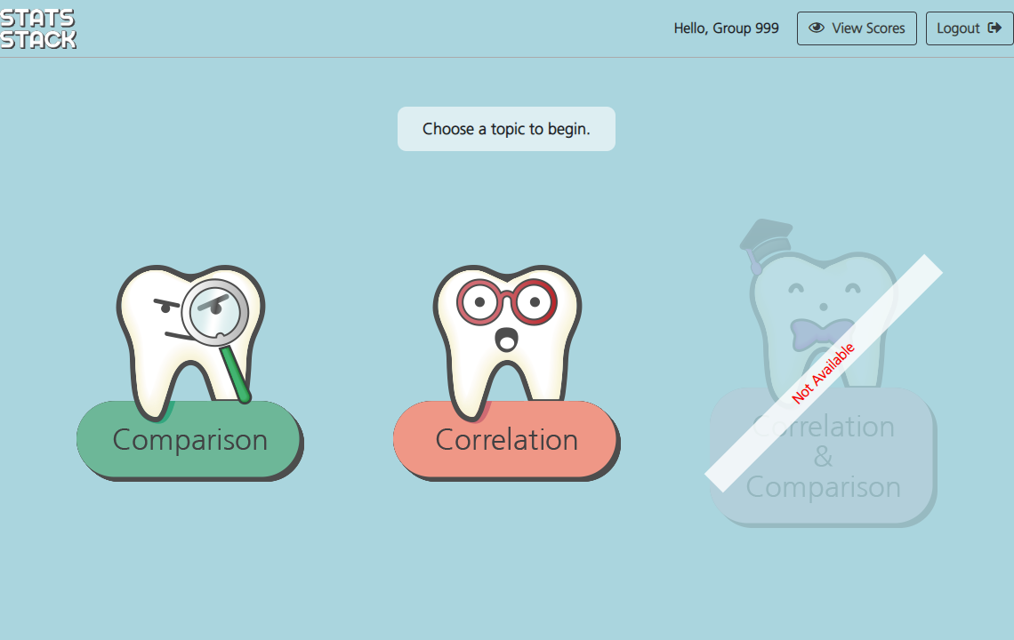 Stats Stack aims to address problems and challenges in learning and teaching biostatistics in the Faculty of Dentistry by introducing an element of fun while learning through a physical game combined with an online quiz tool.