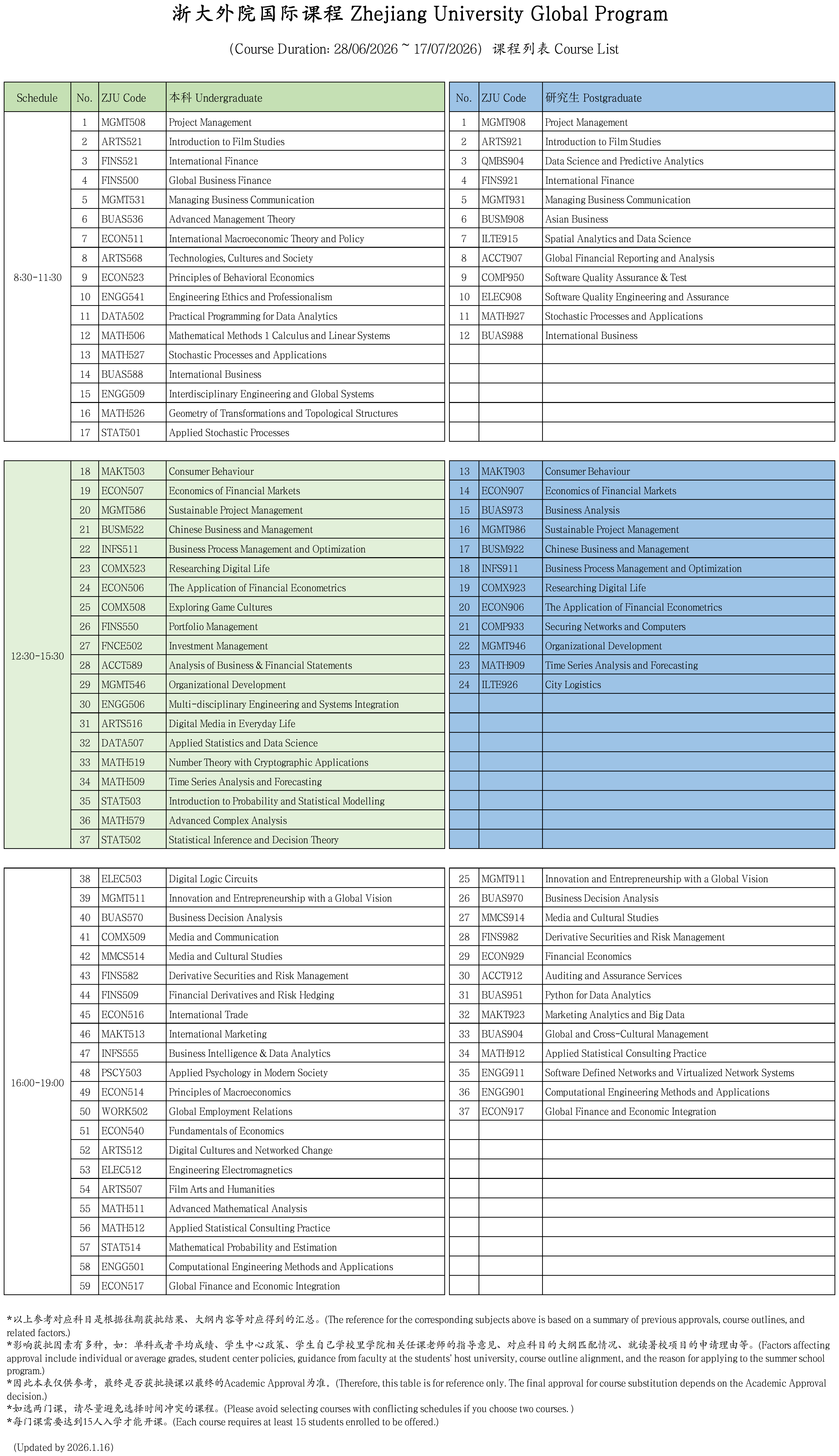 (Permission needs to be given by home Faculty for sessions that overlap with semester one)