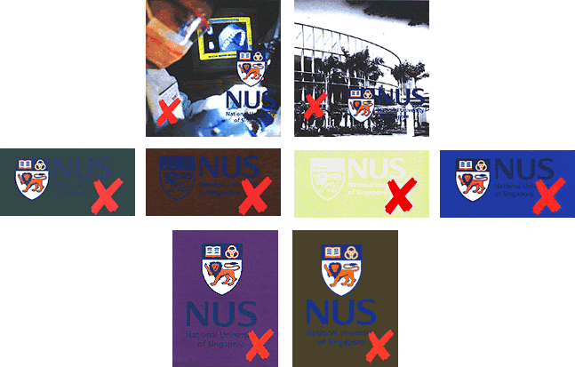 In the absence of contrast between the NUS logo and background, the logo loses its impact and clarity.