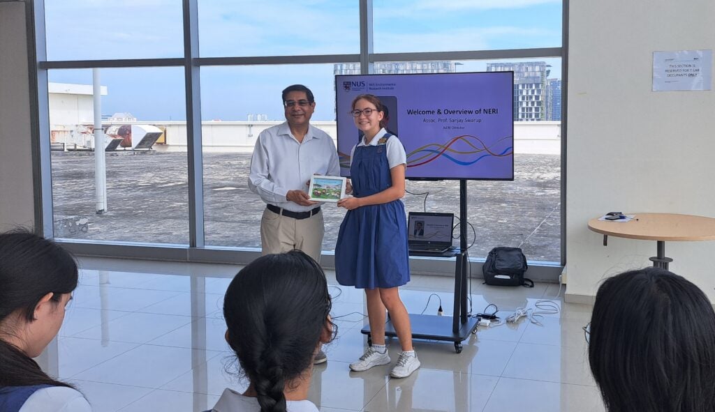 NERI’s director, Assoc. Prof. Sanjay Swarup, warmly welcomed the group and provided an insightful overview of NERI's mission and research focus. Assoc. Prof. Peter Todd from the Faculty of Science and Assoc. Prof. Olivier Lefebvre from the College of Design and Engineering followed with presentations on NUS's environmental studies and programs that could be of interest to the CHIJ students considering their future academic paths. The students also learned about the Singapore International Science Camp on Sustainability, shared by Dr. Ajay Pathania from the Asia Pacific Centre for Management Education (APCME).