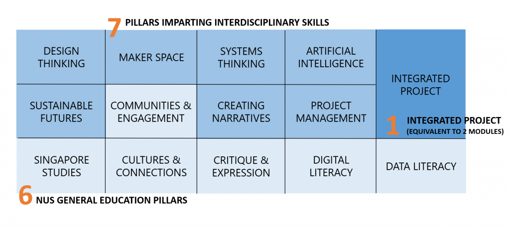 The Common Curriculum is jointly developed by SDE, FoE and 6 industry partners who sit on the task force. It seeks to integrates knowledge and skillsets relevant to the professional training offered by both schools and to equip students with essential 21st century competencies. The following pillars make up the Common Curriculum, comprising 60 MCs (or the equivalent of 15 modules):