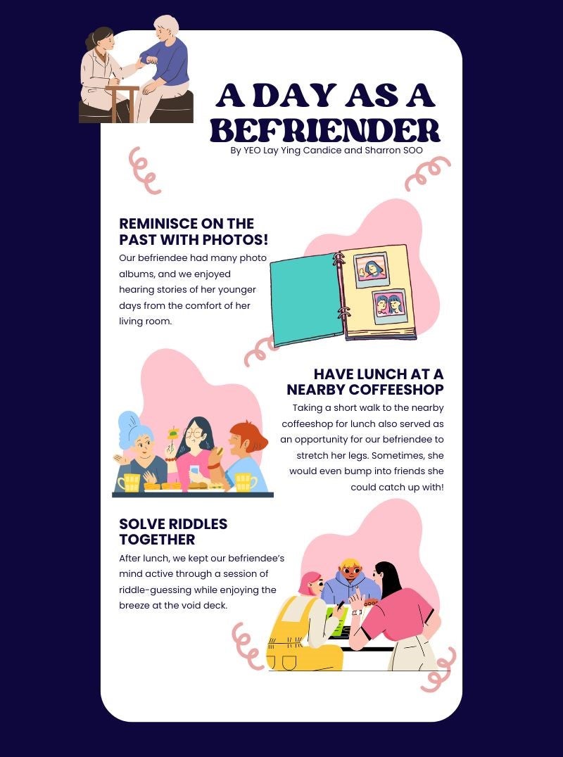 A typical befriending visit. Infographic by YEO Lay Ying Candice and Sharron SOO