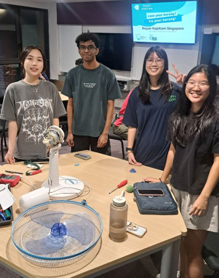 RVN2000 students repairing a broken fan during a Repair Kopitiam workshop