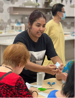 “On our first recce visit to the Active Ageing Centre, the manager shared that the seniors there particularly enjoyed art and craft activities and often took their creations home to share with their family. Observing the paintings and other artworks displayed in the centre, my group realised that these seniors have immense creative potential. This inspired us to plan activities that could tap into this creativity while combining art and craft with a meaningful theme.