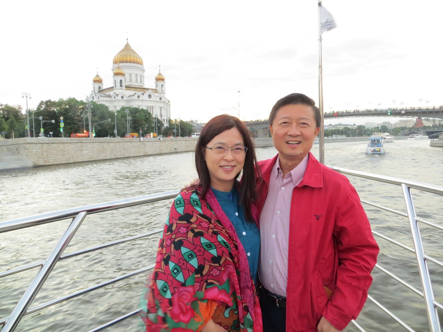 Mrs Tan Guek Ming and Mr Tan Wang Cheow taking a cruise along the Moskva River, Russia in 2018. Image provided by Mr Tan.