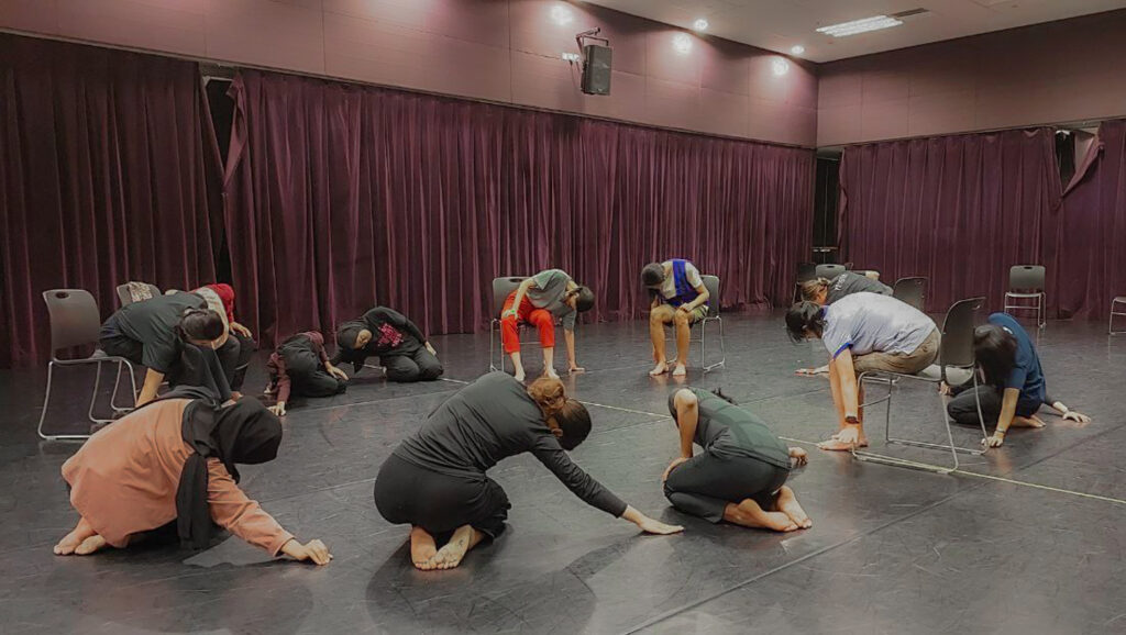 How then did participants move their bodies sequentially while incorporating Malay dance techniques? In the case of the Timang, participants were asked to feel the weight shifting from the heel to the ball of the feet. By getting them to move sequentially, they would inevitably slow down and reflect on how they feel about these movements. Some participants who are Malay dancers themselves found themselves doubting their techniques as they remarked how they would usually rely on their subconscious muscle memory to perform the movements like the keluk paku. The breathing techniques that were taught by Assoc. Prof. Liang added to the movement’s complexities, yet it is crucial to think about these things to prevent dancers from injuring themselves further.