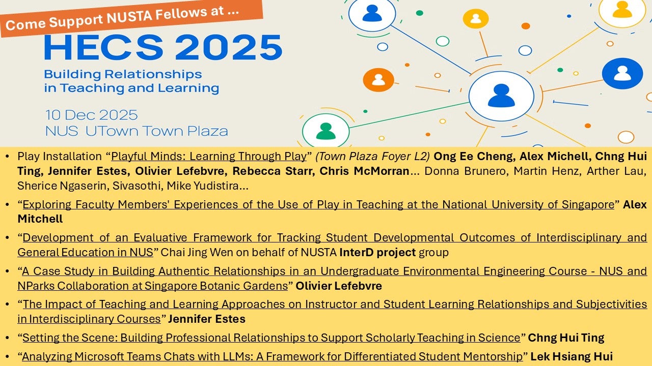 Teaching Academy Fellows derive from diverse disciplines, and share a deep commitment to education. Get to know our Fellows who engage in independent critique and systematic investigation of T&L practices, to bridge stakeholders with evidence-based learning and sharing.